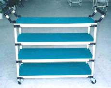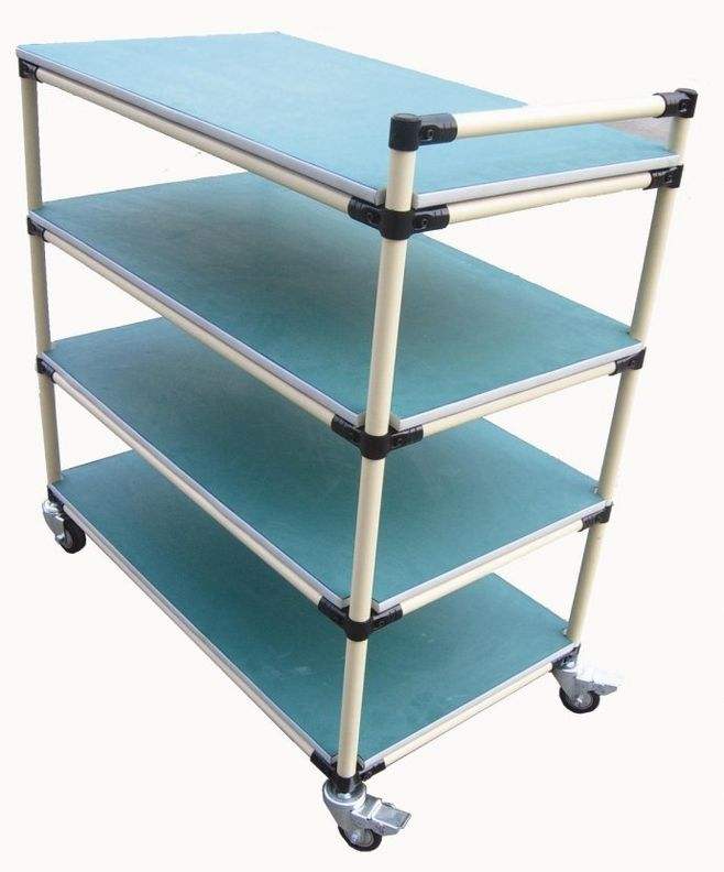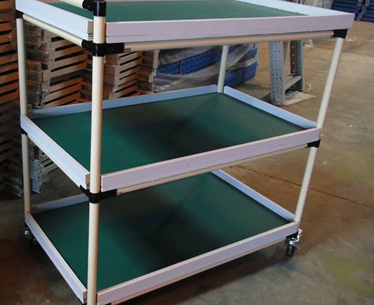 精益管线棒系列周转车,精益管推车台车,货架等产品由南京博萃自动化设备有限公司专业设计制造,线棒的颜色有纯白/乳白/淡黄色/黑色等可供客户选择,线棒厚度从0.8-2.0厚客户可根据自身需要定制,成品规格功能等也可以定制,台车推车台面可铺设绿色胶皮或木板白色本色,轮子有万向和定向由客户选择,线棒周转车台车层数规格都可以定制